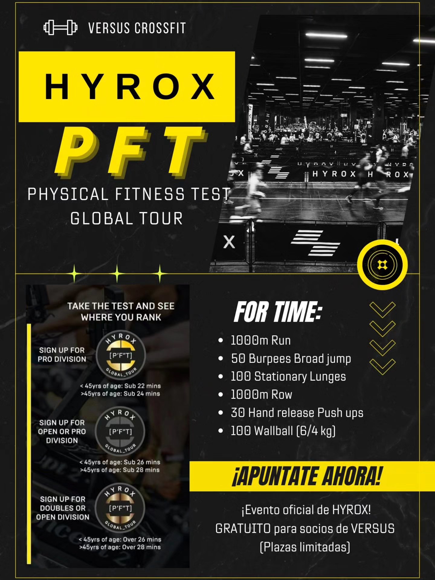 VERSUS HYROX PFT – EVENTO OFICIAL Sábado 8 de Noviembre Versus CrossFit GRATUITO para socios de VERSUS No socios: acceso Drop-In del box (12€) Reserva tu plaza por: Mensaje privado Instagram @crossfitvsg O por mail: getafe@versuscrossfit.com — ¿Qué es el HYROX PFT? Un test oficial diseñado por HYROX para medir tu nivel de fitness. Resultados […]
